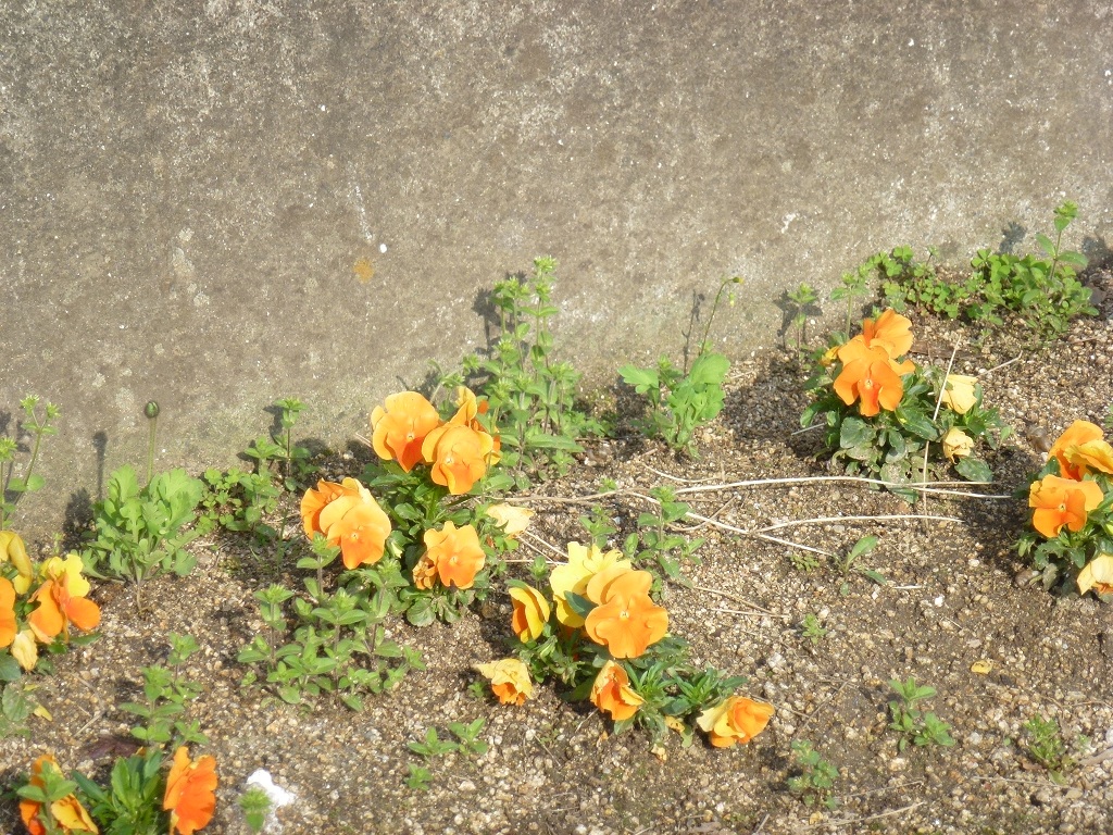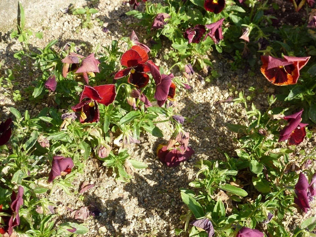 人手は今咲いてるパンジーの周りの草取りです