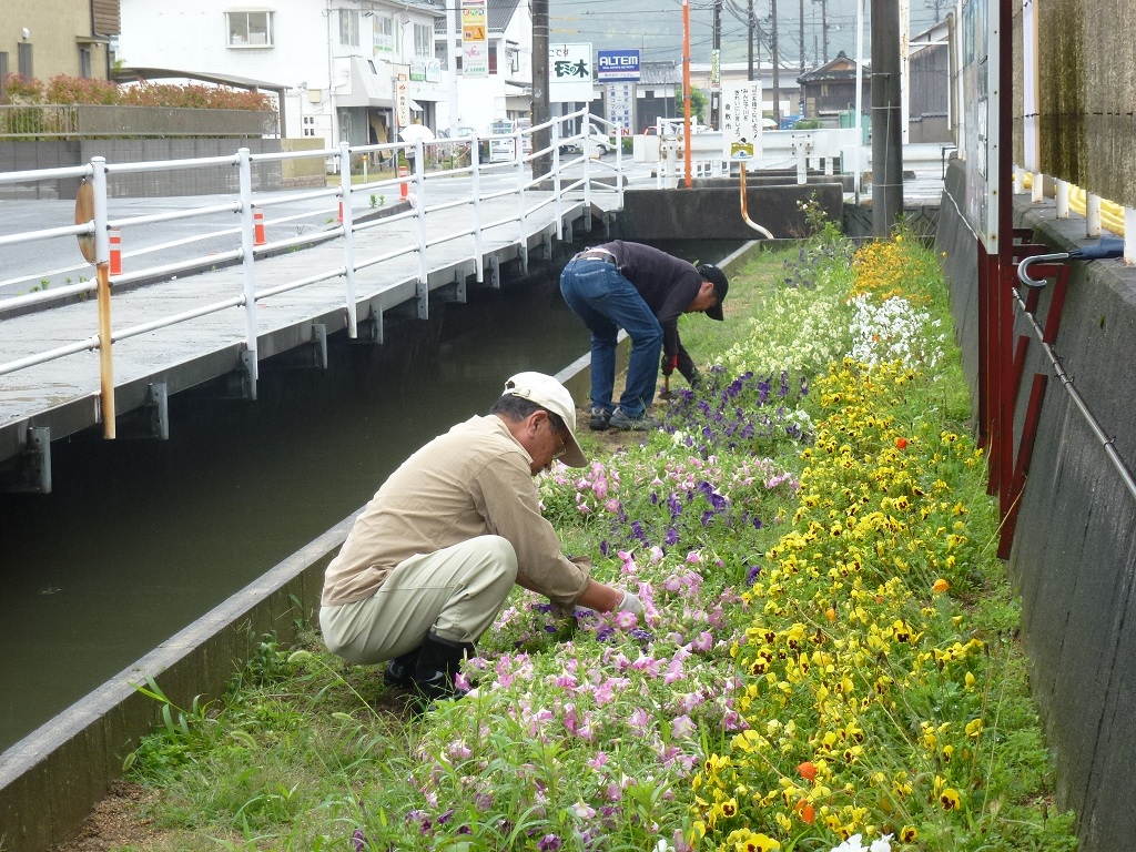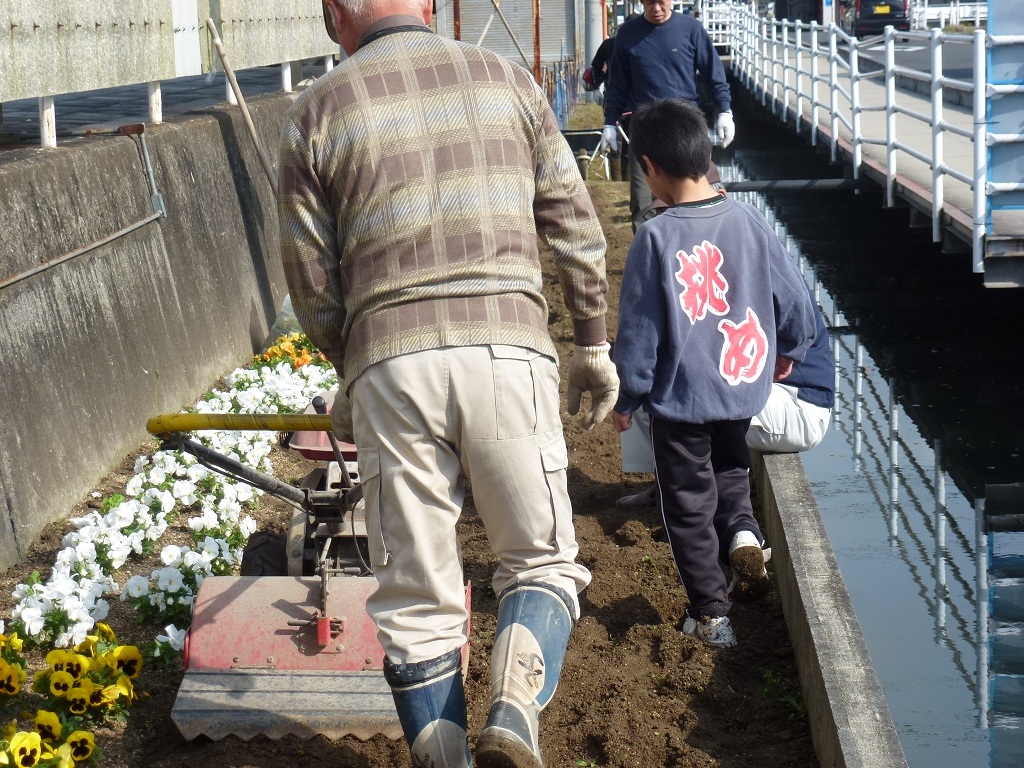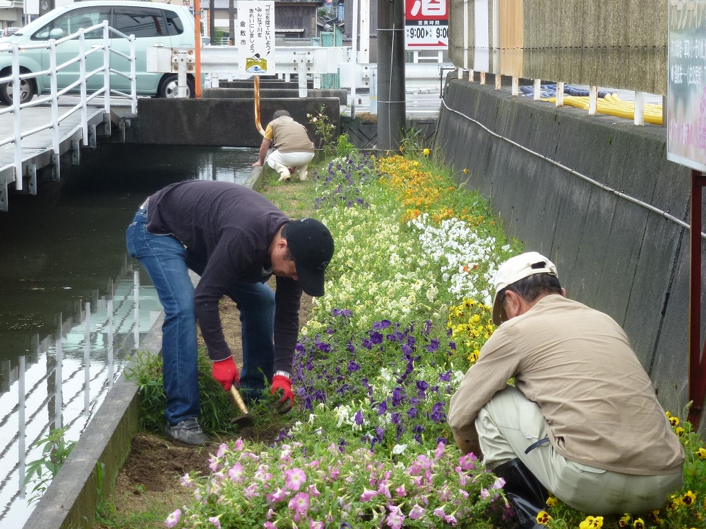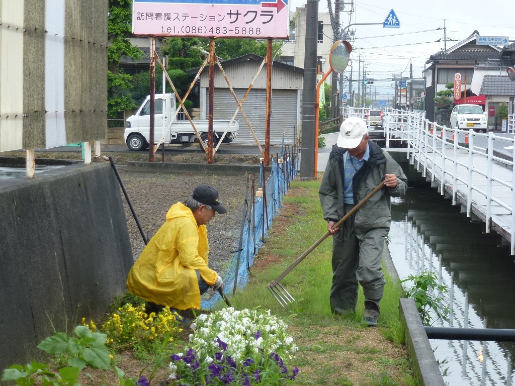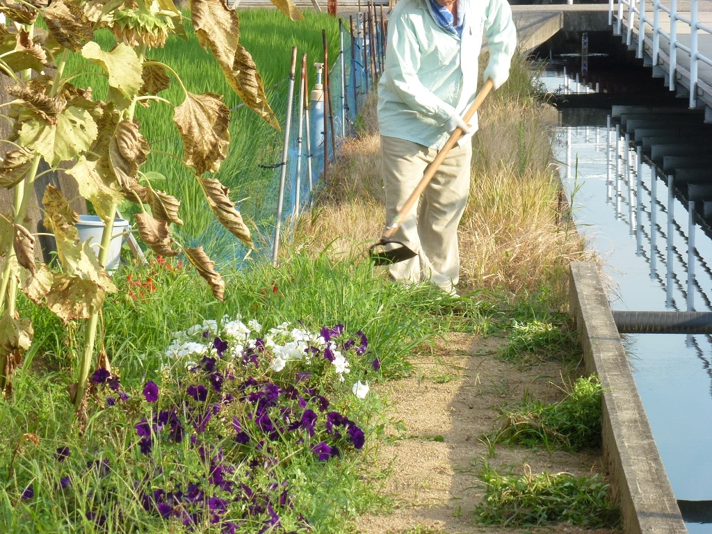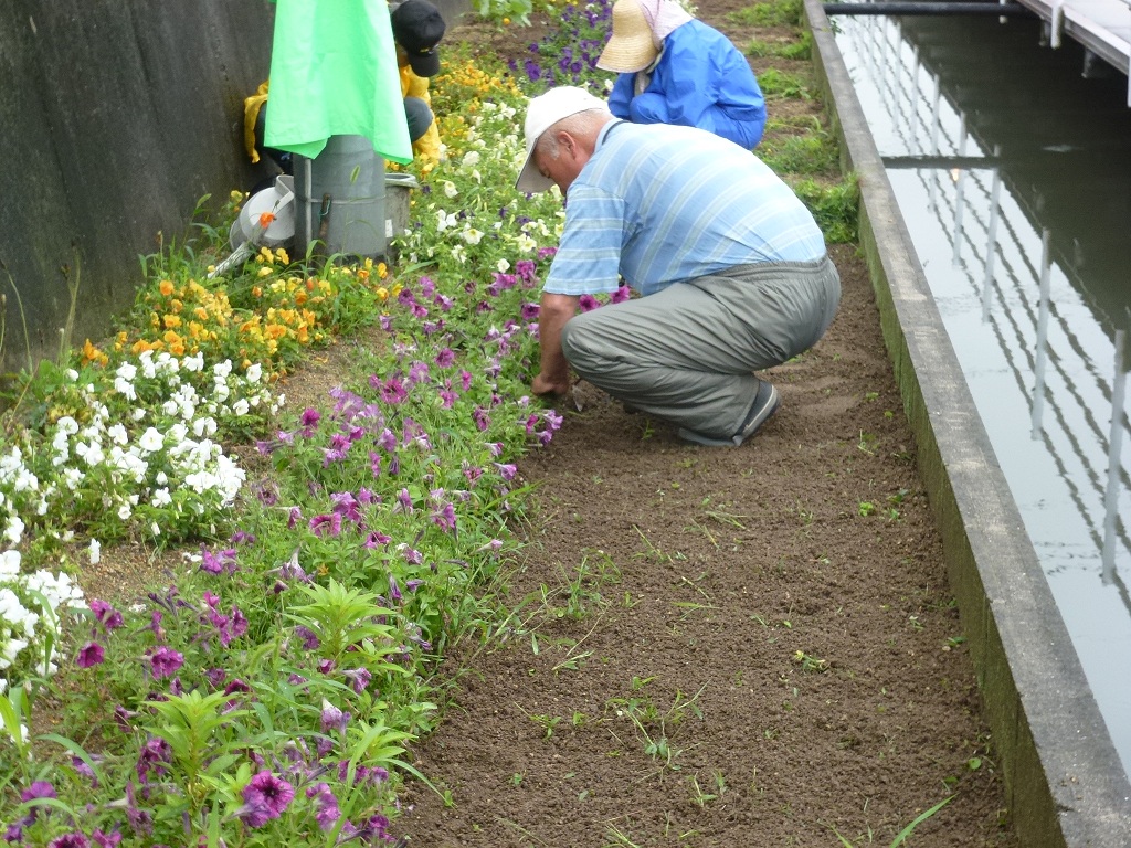 今日は月に一度のふれあい花壇の手入れの日