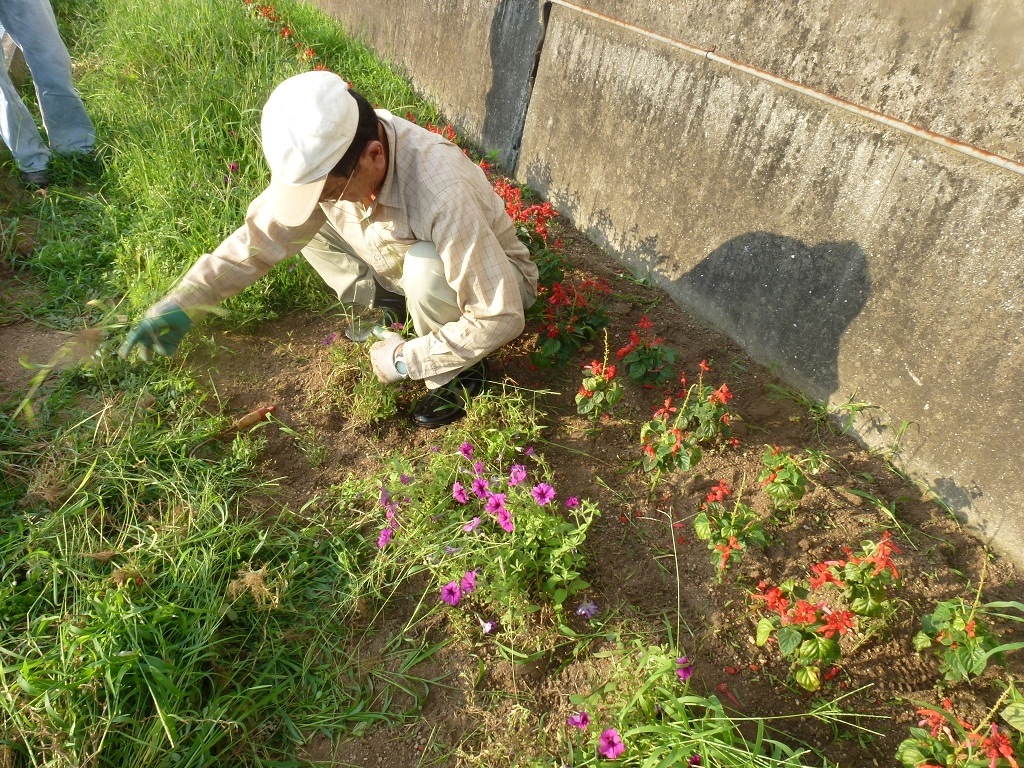 今年も「ふれあい花壇草取り」でした