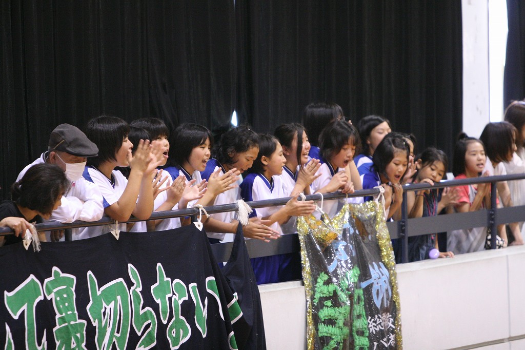 この日は父兄に混ざって、隣の陸上競技場からも応援が