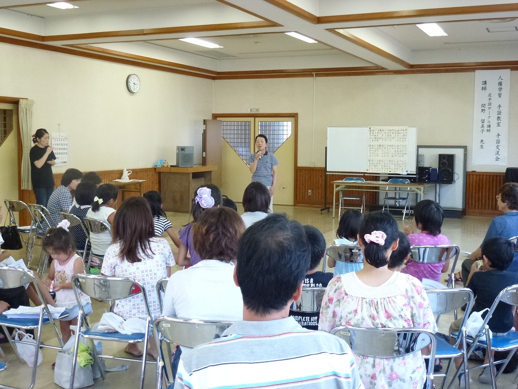 先生は手話で話されるので、サークルの方が同時通訳です