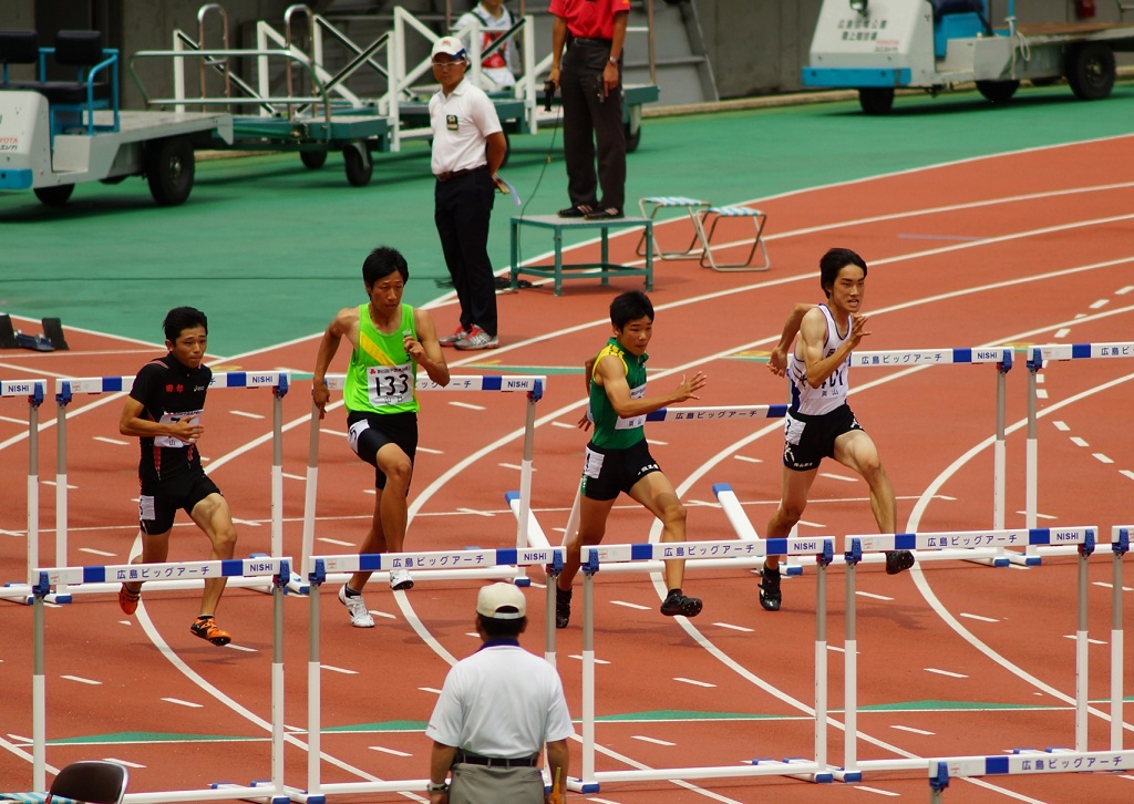 ハードルをブっ倒しながら熱い走りでしたよ