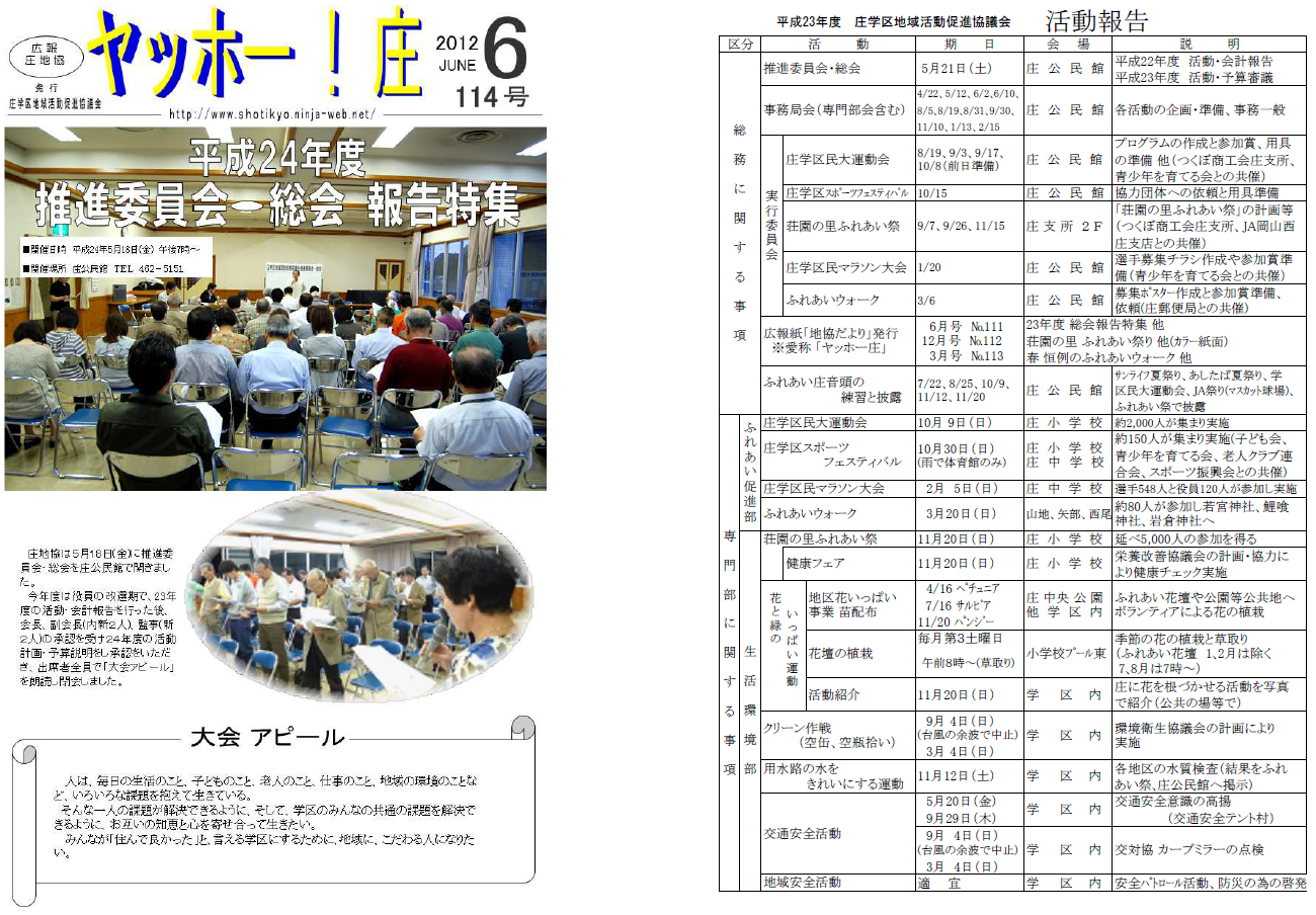と言うことで「ヤッホー!庄(114号)」、本日発行です
