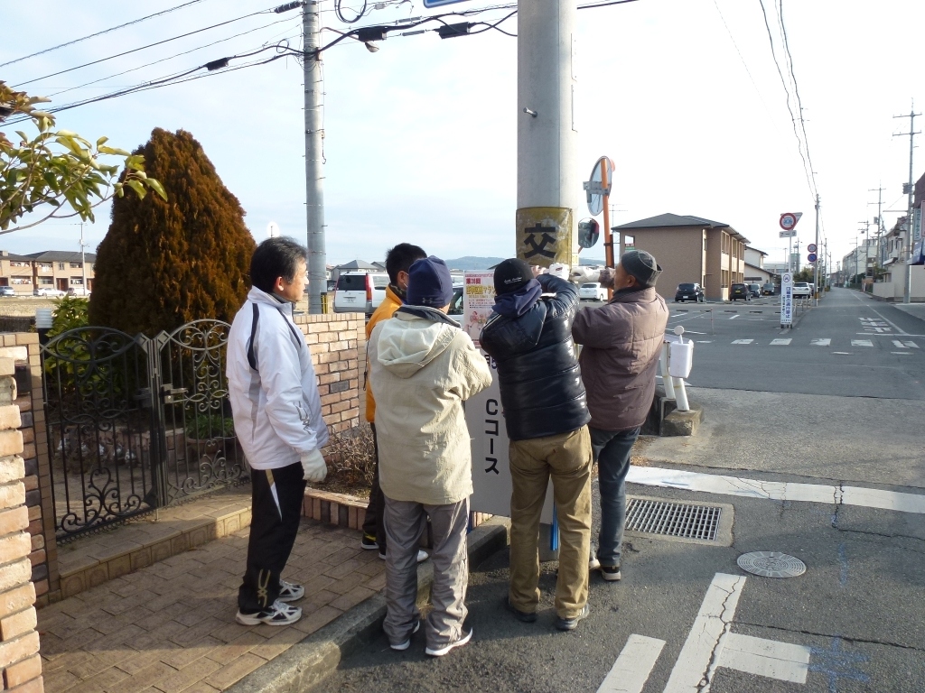 看板を回収し、とりあえず出発地点の中学校に集合