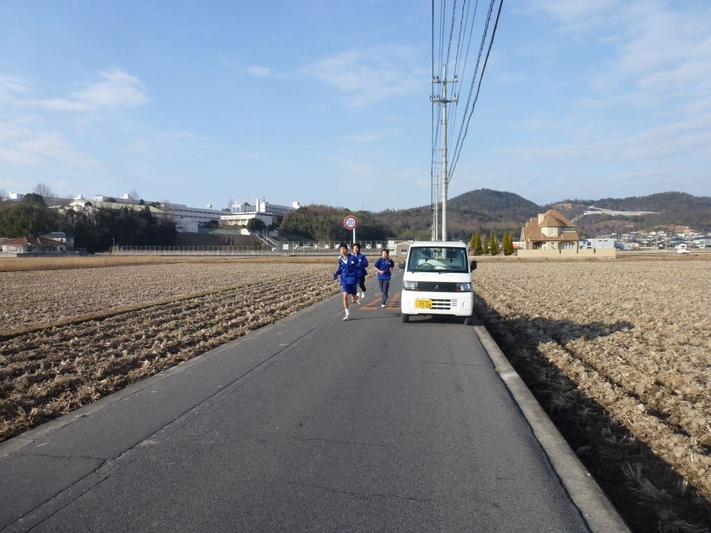 男子テニス部がマラソンコースを試走(?)してました