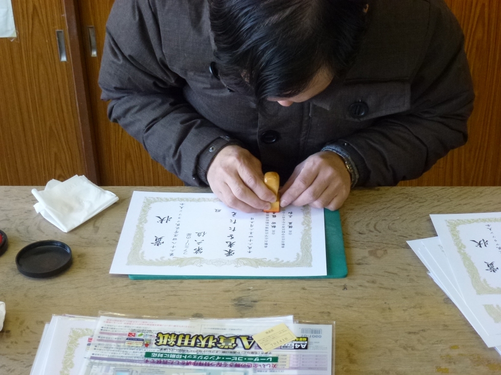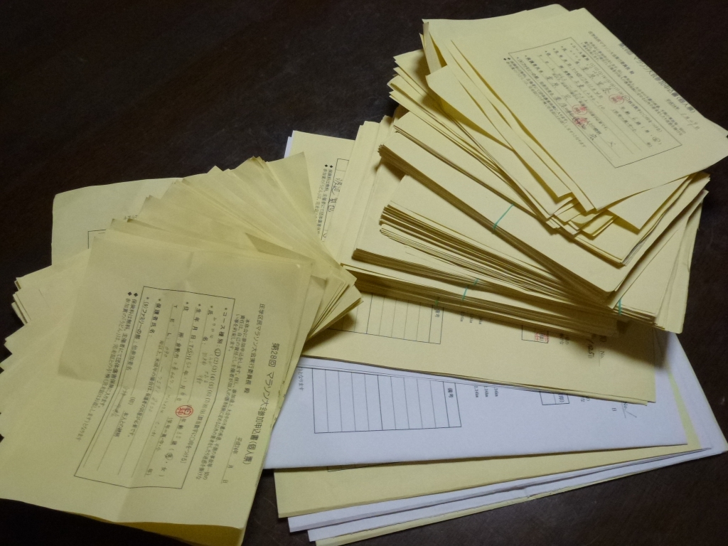完走証へのナンバリング、順位記入、賞状への押印とたくさんあります